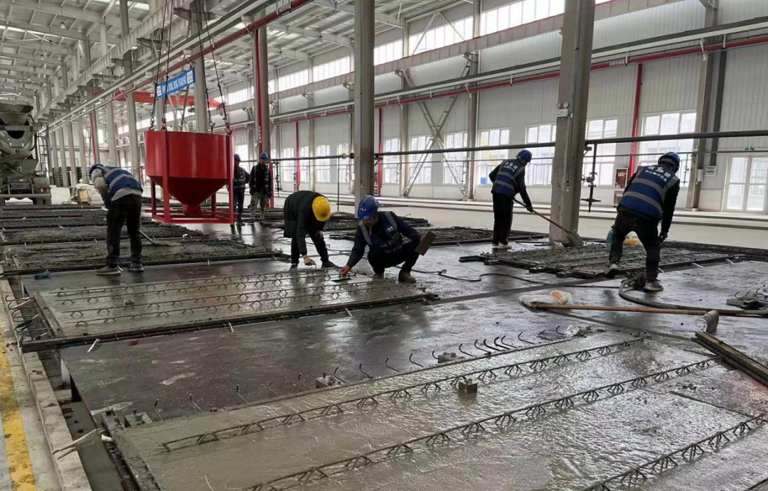 第二厂区自今年3月10日投产以来,为加快释放产能,在迅速调配精兵强将搭建管理团队、明确分工、完善制度的基础上,进一步优化设施设备配产方案,目前已配置3.5米×9米的模台80张,同时加强钢材、水泥等原材料的保供力度,强化生产计划管理,将年度产量目标分解到车间、班组。坚持每日召开生产碰头会,通报前日产量、下达当日计划,分析存在问题并立即制定整改措施落实。
