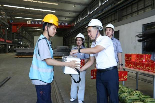 调研中,王政为冒酷暑、战高温,坚守岗位的一线职工送去“清凉”防暑福利和慰问关怀。