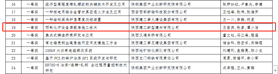 近日,陕西省科学技术协会公示了2023年陕西省企业“三新三小”创新竞赛评审结果,陕西建筑产业投资集团所属企业陕建新型建材公司《预制化疗设备屏蔽房施工技术》荣获竞赛一等奖,陕建装配智造公司《对废旧模具的改造再利用》荣获竞赛二等奖。