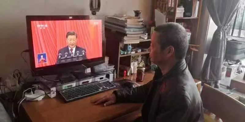陕建建材销售公司党支部党员通过电脑、电视等形式观看党的二十大开幕式